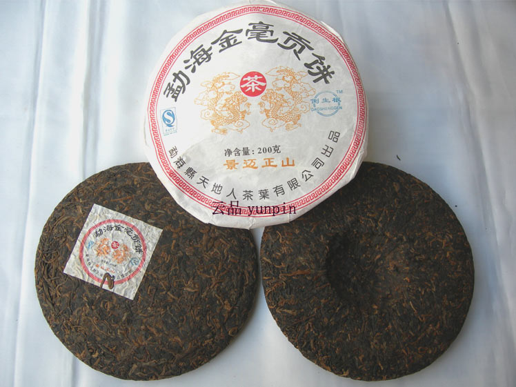 06年天地人景迈正山倒生根普洱茶勐海金毫贡饼干仓熟茶超值促销